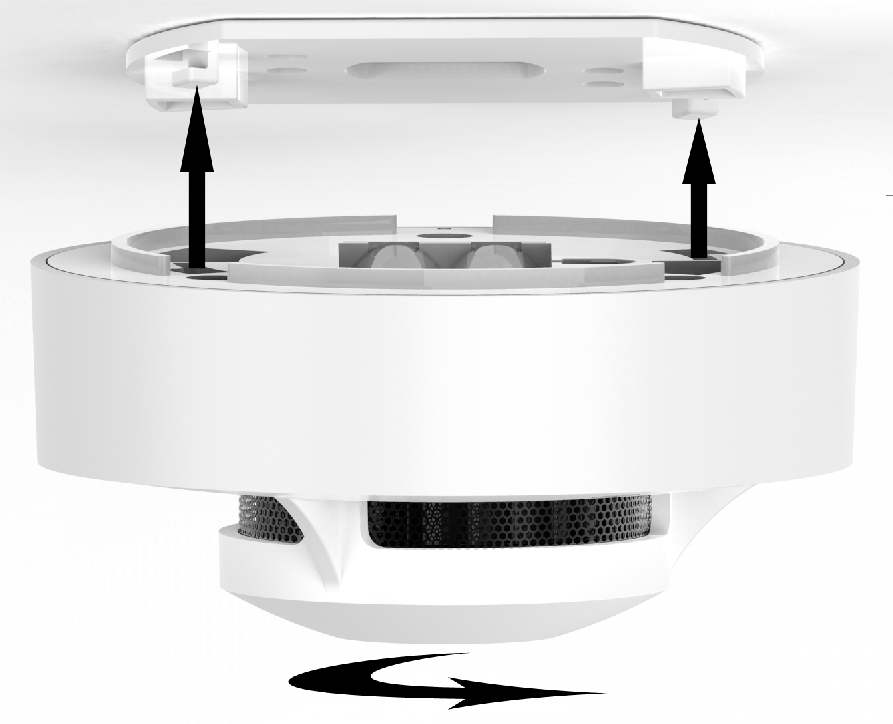 c. Steek de haken van de montageplaat naar de sleuven van het alarm. Draai het alarm met de klok mee totdat deze op zijn plaats klikt. (Zie figuur 3)
