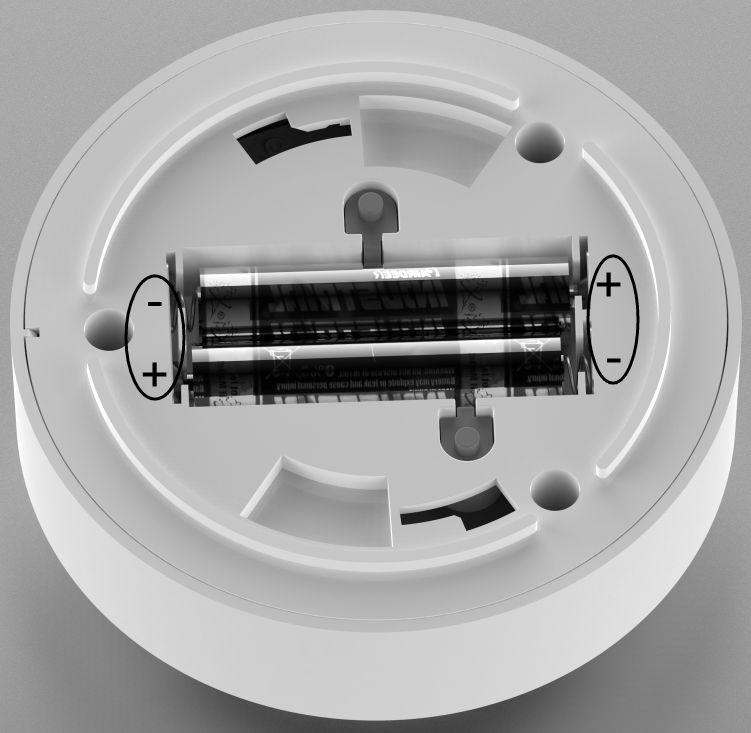 Draai het alarm tegen de klok in en verwijder deze van de montageplaat. Neem de batterijen eruit.