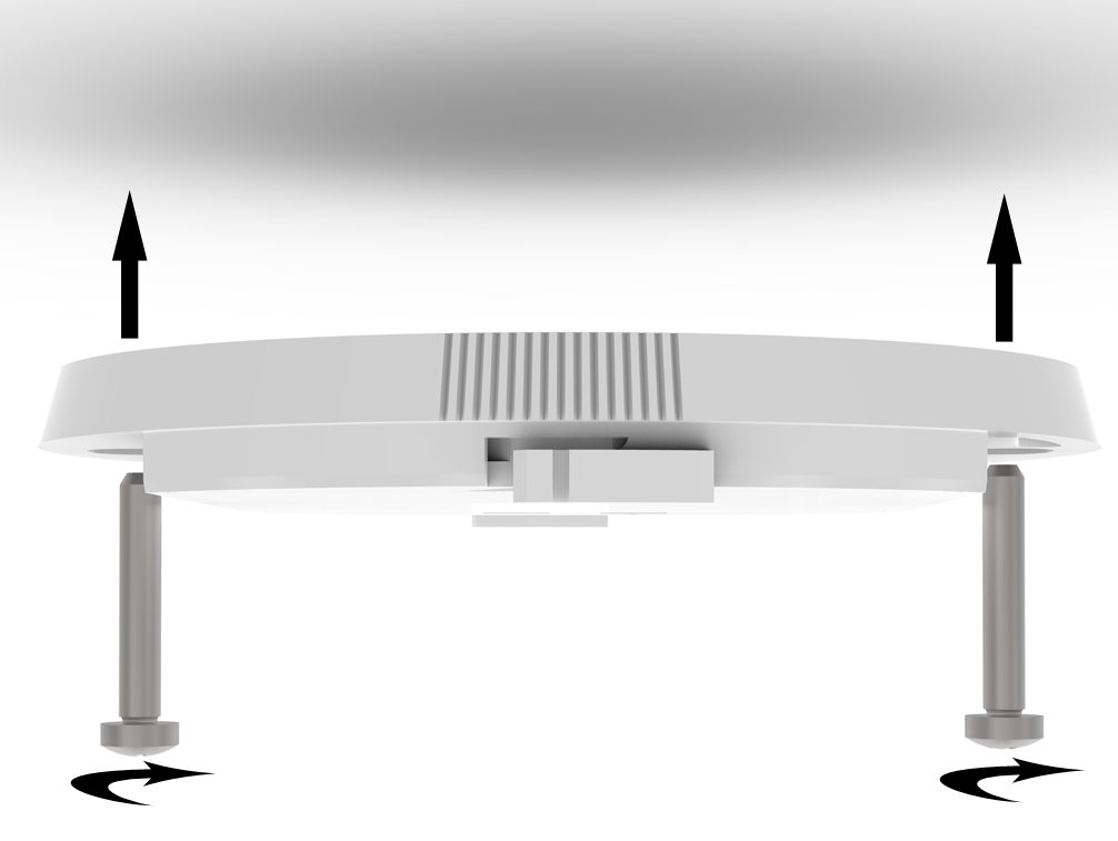 5.21 Houd de montageplaat tegen de geselecteerde installatiepositie op het plafond en markeer het midden van de gaten met een potlood. Boor een gat door de potloodmarkeringen en gebruik de bijgevoegde schroeven en ankers om de montageplaat te bevestigen. (Zie figuur 4)