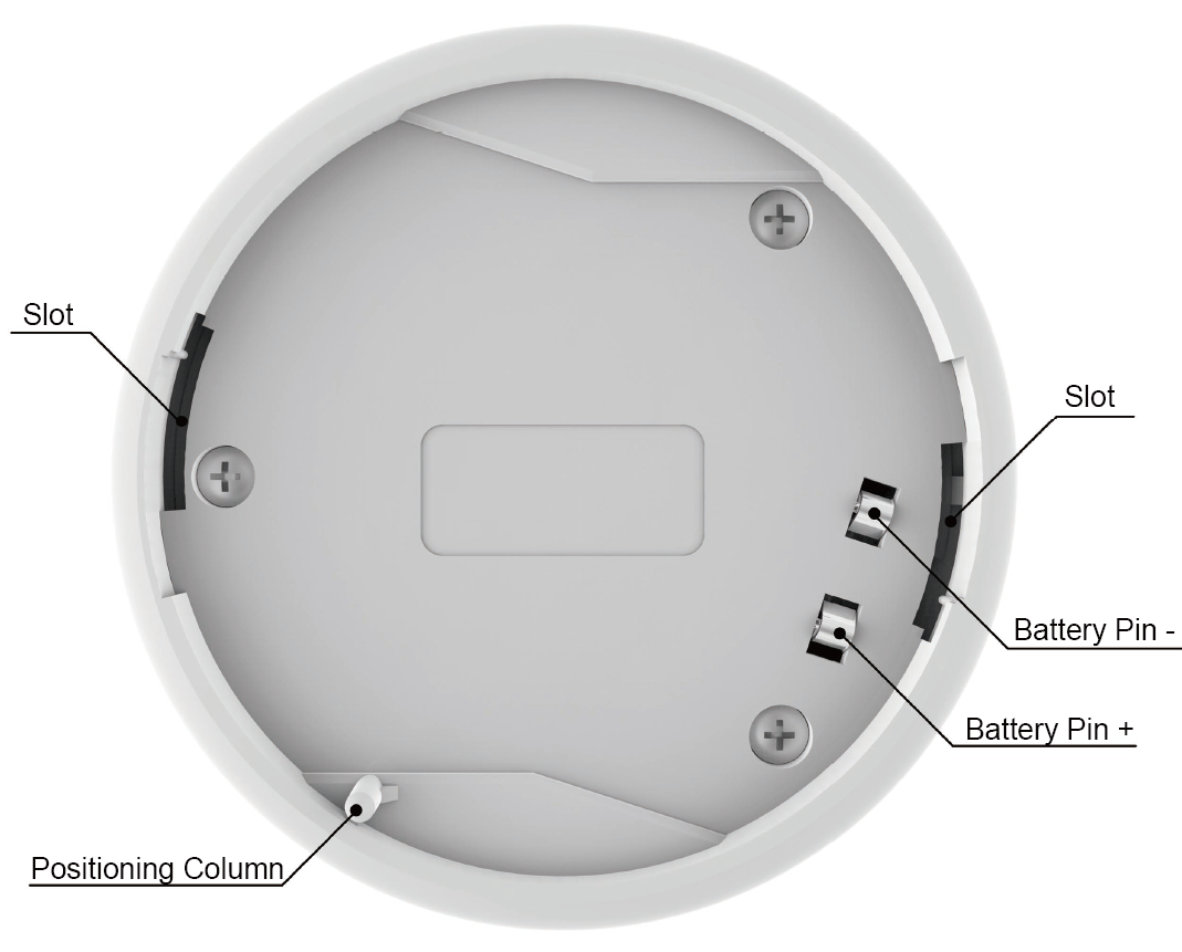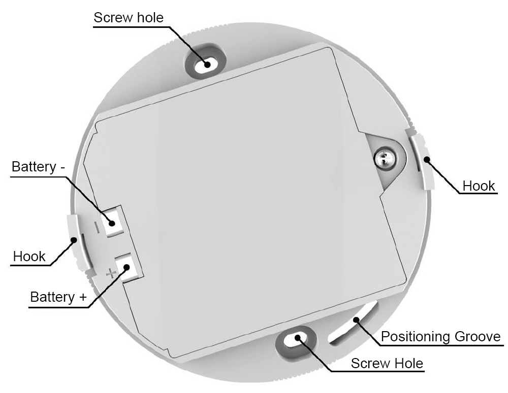 5.22 Steek de haak van de montageplaat naar de gleuf van het alarm, de positie van de positioneringskolom moet ook uitlijnen met de positioneringsgroef. Draai het alarm met de klok mee totdat deze op zijn plaats klikt.